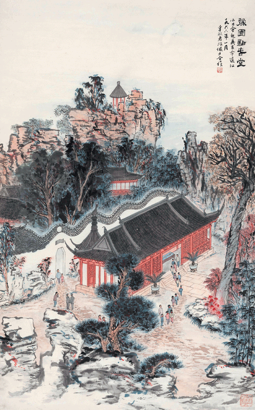 豫园点春堂(国画)111×69.5cm 1966年 /陆俨少、李秋君 合作