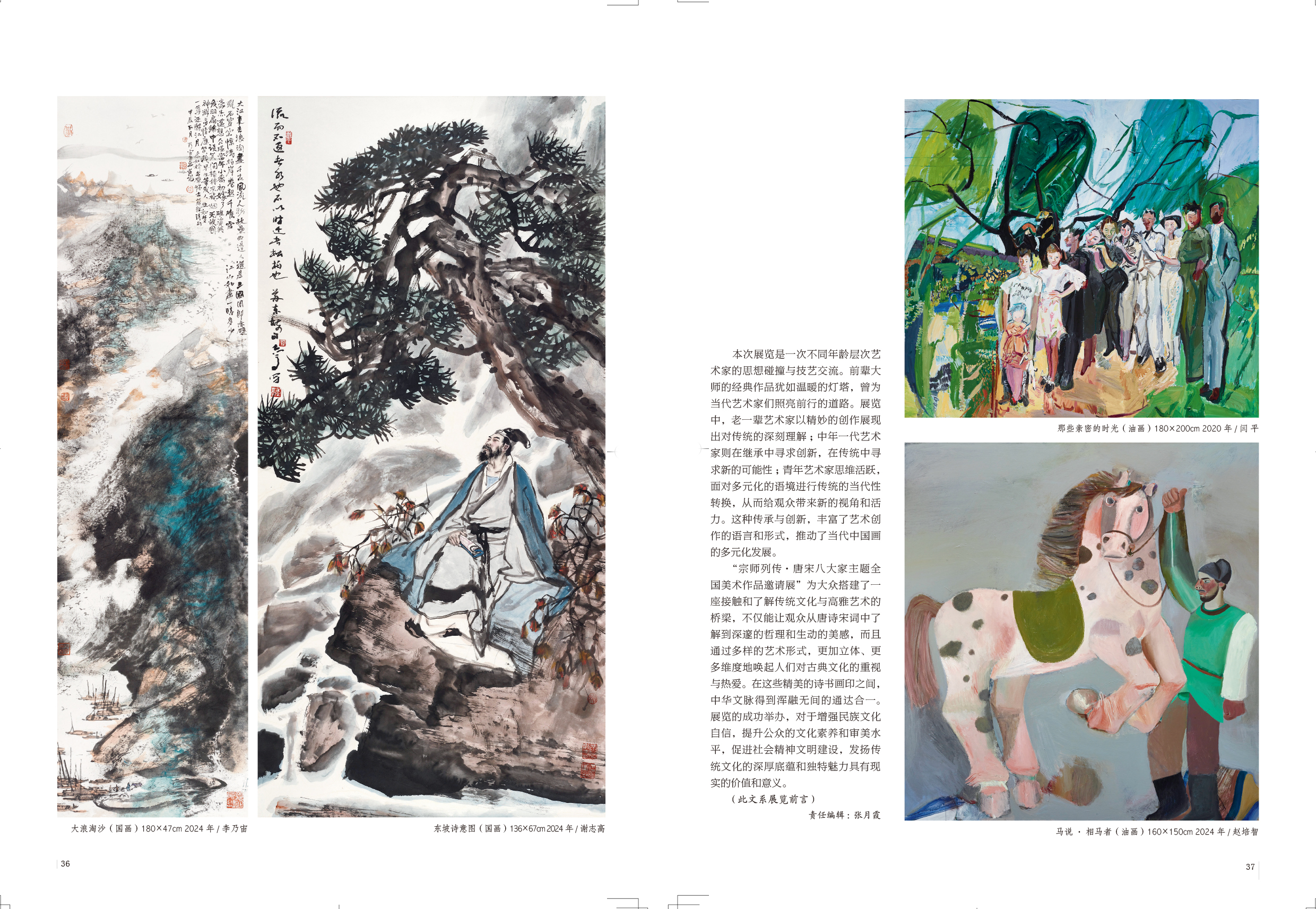 本次展览是一次不同年龄层次艺术家的思想碰撞与技艺交流。前辈大师的经典作品犹如温暖的灯塔,曾为当代艺术家们照亮前行的道路。展览中,老一辈艺术家以精妙的创作展现出对传统的深刻理解;中年一代艺术家则在继承中寻求创新,在传统中寻求新的可能性;青年艺术家思维活跃,面对多元化的语境进行传统的当代性转换,从而给观众带来新的视角和活力。这种传承与创新,丰富了艺术创作的语言和形式,推动了当代中国画的多元化发展。