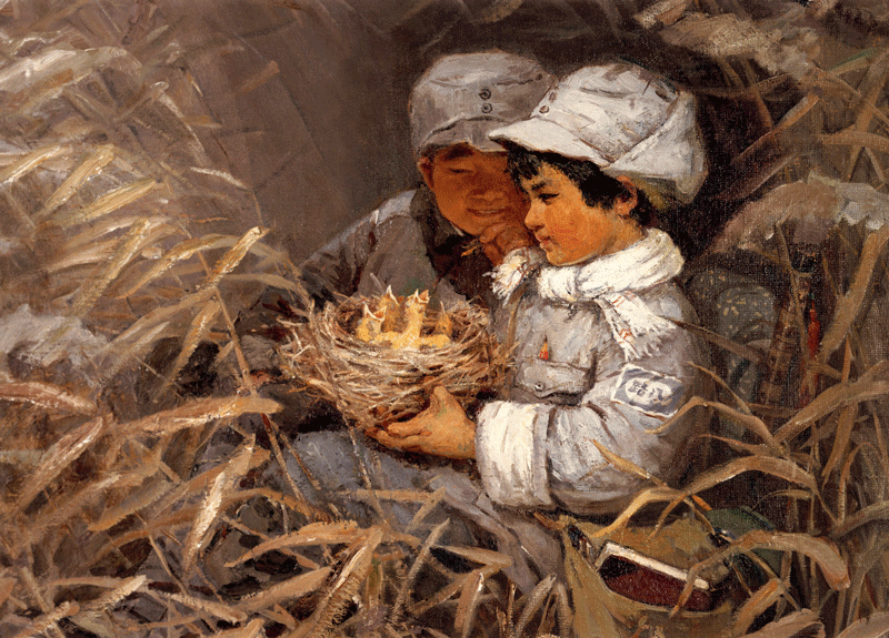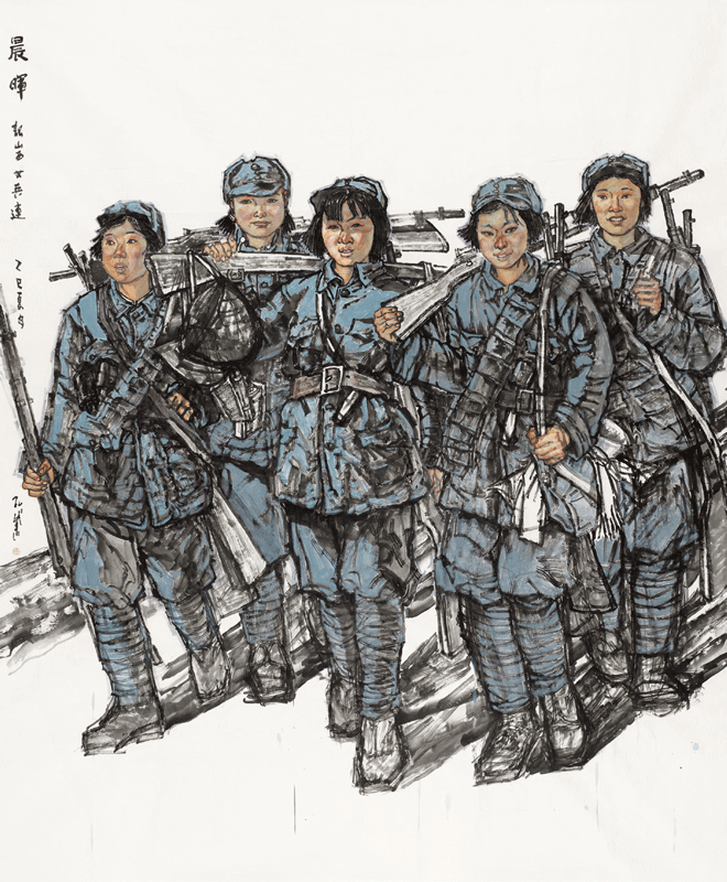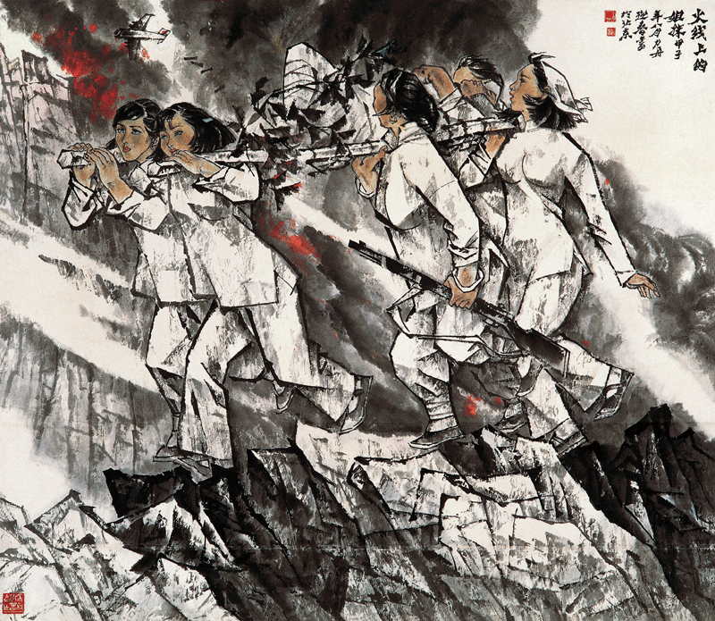 火线上的姐妹(国画)108×125cm 1984年 /杨力舟、王迎春合作