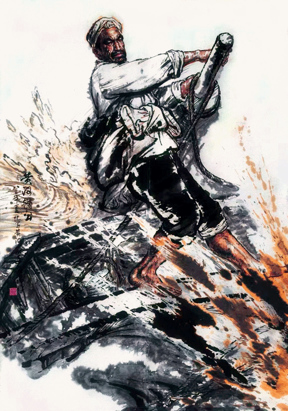 黄河艄公(国画)200×135cm 1983年 /杨晓阳