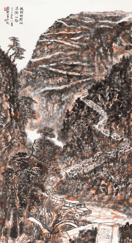 抗战时期的滇缅公路(国画)236×125cm 2025年 /赵 卫