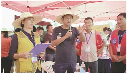 徐海波(左二)在黄山市高素质农民粮食作物栽培工技能大赛上作点评。 (图片由受访者提供)