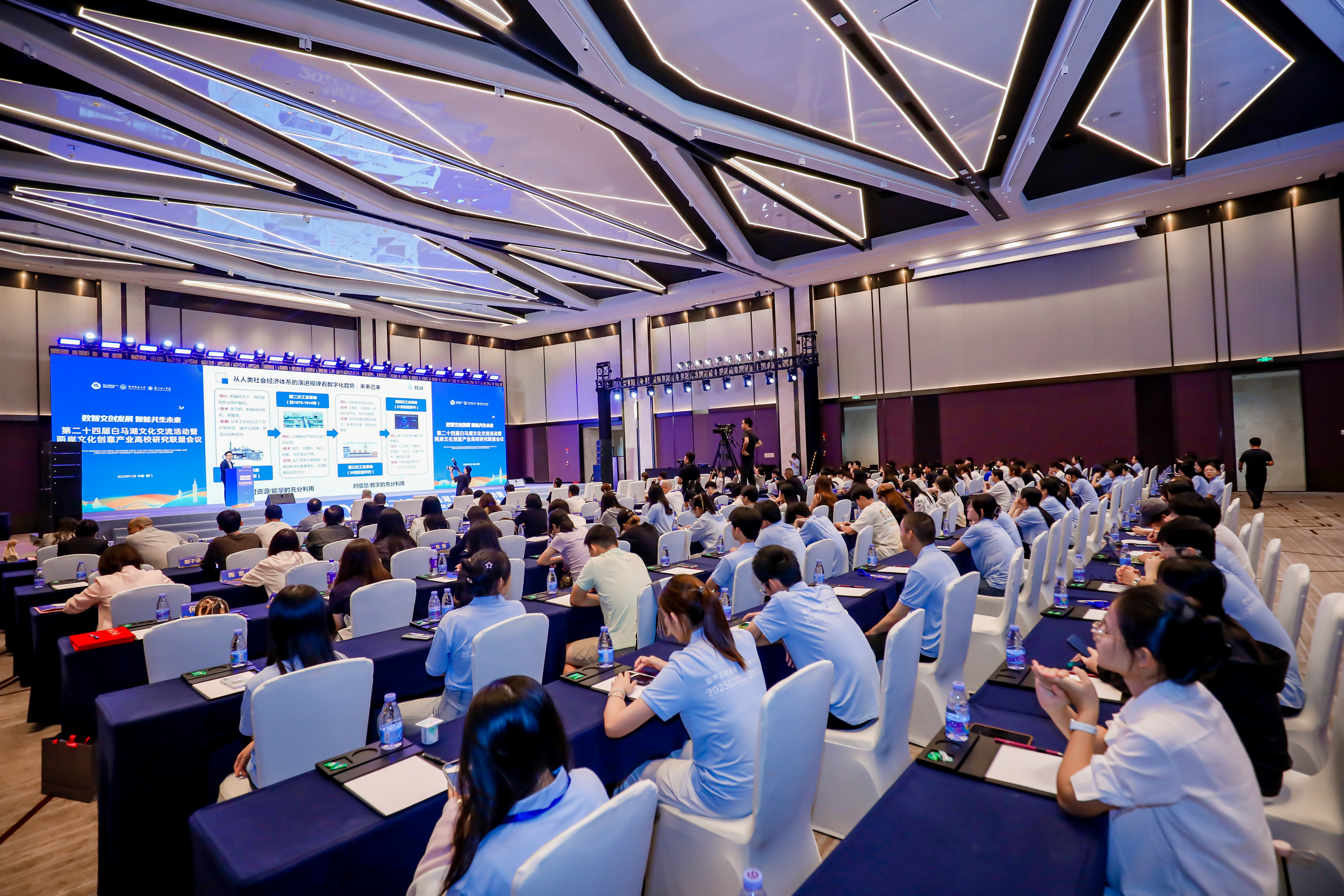 11月1日,以“数智文创发展·智能共生未来”为主题的第二十四届白马湖文化交流活动暨2025两岸文化创意产业高校研究联盟会议在厦门举办。两岸高校学者、文创企业家、科研机构代表及政府部门负责人数百人齐聚一堂,共探数智技术与文化创意的融合路径,为两岸文创协同发展注入新活力。