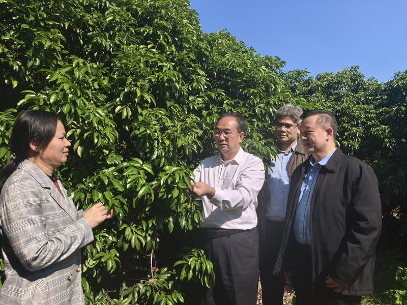 11月25日,广西壮族自治区钦州市政协农业专家服务团联合钦州市科协,深入钦北区英山果场开展调研,探讨建立钦北区荔枝科技小院,通过定期举办荔枝种植管理技术培训班和现场指导服务,帮助周边果农提高种植水平,助力增收致富。(邓吴宇 肖亮升 摄)