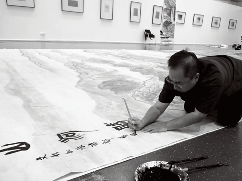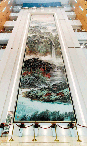 2023年底,文化和旅游部艺术发展中心作为雄安图书馆大厅壁画创作单位之一,开始了草图的创作任务。作品形式确定为生宣水墨画,近24米的高度和6.3米的宽度使这幅画在诞生的草拟阶段就成为将来陈列于我国公共文化空间里最高的一幅巨幅水墨画作品。
