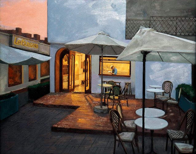 傍晚的咖啡馆(油画)80×100cm /杨庭超