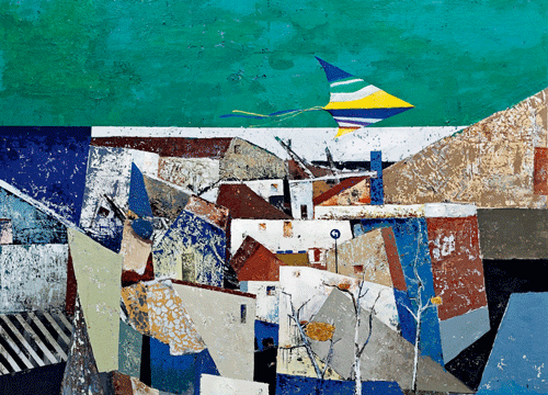 鸢舞晴空:她的自由诗(水彩水粉)120×160cm /郝宏丽