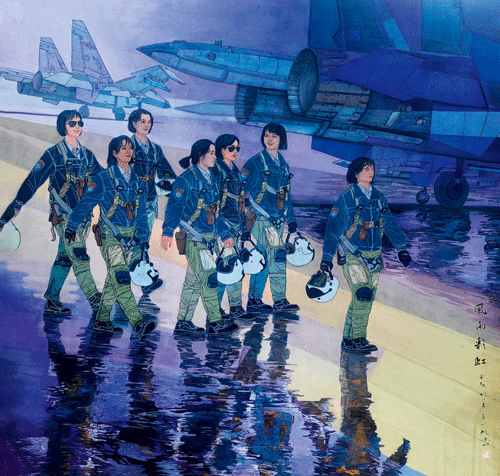 展览由中国书法家协会主席孙晓云题写展名。共分五个篇章,涵盖了国画、油画、版画、雕塑、水彩粉画、书法、综合材料等不同艺术门类,五个篇章分别对应着女性在社会中的身份与角色。“家国情怀,担当奉献”,彰显女性深厚的家国情怀以及在推动国家发展、社会进步中的责任担当与无私奉献。无论是共和国勋章获得者、诺贝尔奖得主屠呦呦提取青蒿素造福人类,还是航空航天事业中的女性身姿,都充溢着深厚的爱国情怀。女艺术家们以自豪之情,用丹青妙笔,深情描绘。“巧手织锦:赞美劳动”,展现女性在各行各业辛勤耕耘、创造价值的故事与精神。无论是国家重大工程的建筑工地,还是日常工作中的普通岗位,都有女性劳动者挥洒着辛勤汗水。女艺术家们也是劳动者中的一员,日复一日的艺术训练,才有了生花妙笔,将艺术巧思铺陈于画布。“时代风华:吟咏美好”,描绘当代女性多姿多彩的生活图景与审美追求。女性天生爱美,既是美的代言人,也创造美的艺术世界。山川河流,雪月风花,在女性艺术家们的浅吟低唱中,绽放出美的光芒。“十月春晖:颂扬生命”,聚焦女性作为生命创造者与守护者的角色,歌颂生命的力量与美好。女性艺术家以色彩、线条所构成的美好图景,歌唱自然与生命的永恒母题。“开放包容:和谐共生”,聚焦女性爱好和平、向往和谐的天然特质,和对家园、社会与世界和平的珍视、守护与贡献。女艺术家们将真情与真诚凝聚为充满艺术感染力的作品,呼唤着世界和平、万物共生。
