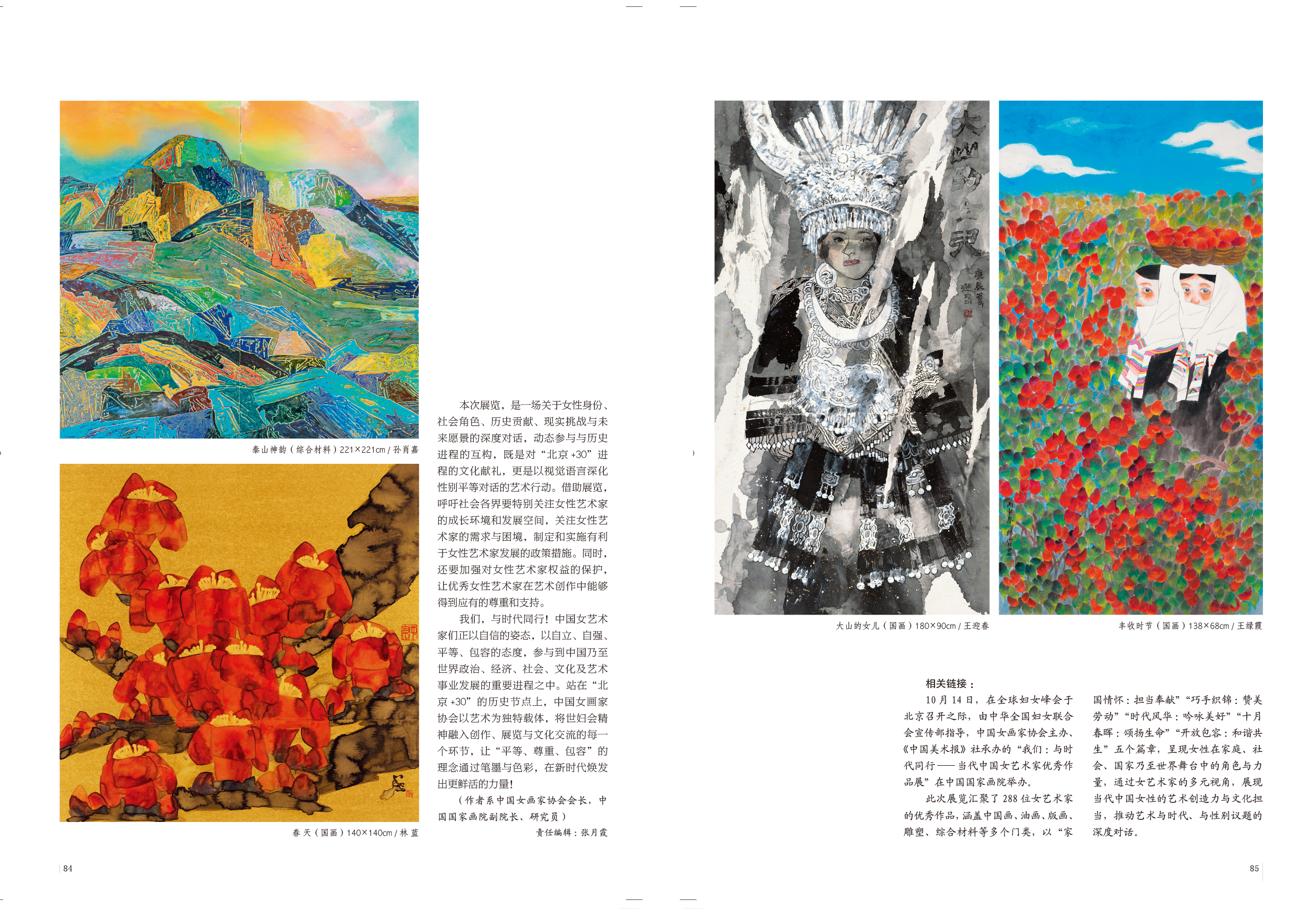 今年是联合国第四次世界妇女大会即北京世妇会召开30周年。30年前,一场盛会,成为全球妇女事业发展的里程碑。30年后,在习近平主席亲自倡导下,中国举办此次全球妇女峰会,国际社会高度瞩目。为此,中国女画家协会在全球妇女峰会召开期间,以“我们:与时代同行—当代中国女艺术家优秀作品展”为主题举办展览,邀请各地女艺术家团体共同参与,旨在通过女性艺术家的多元视角,全面展现女性在文化、社会、科技、艺术等领域的突破与成就,推动艺术创作与性别议题的深度对话,从一个侧面展现30年来中国妇女事业全面发展取得的辉煌成果。