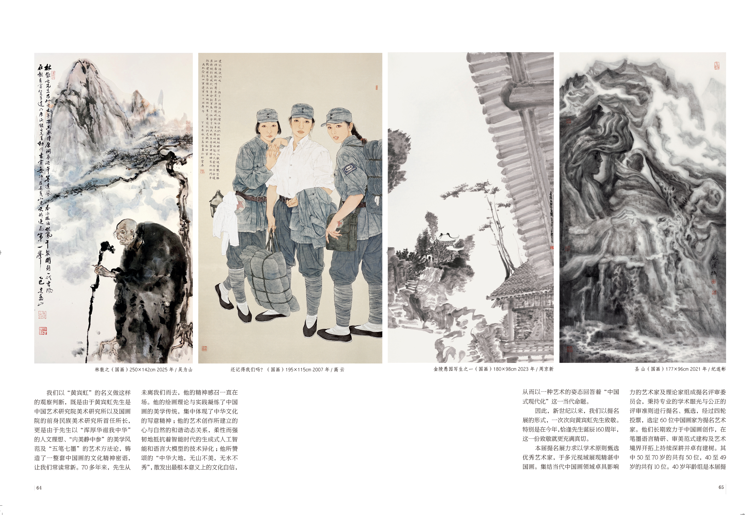 本届提名展力求以学术原则甄选优秀艺术家,于多元视域展现精湛中国画。集结当代中国画领域卓具影响力的艺术家及理论家组成提名评审委员会,秉持专业的学术眼光与公正的评审准则进行提名、甄选,经过四轮投票,选定 60 位中国画家为提名艺术家。他们长期致力于中国画创作,在笔墨语言精研、审美范式建构及艺术境界开拓上持续深耕并卓有建树。其中50至70岁的共有50位,40至49岁的共有10位。40岁年龄组是本届提名展新增设的,这并不是对于年龄的关照,而是一种动态眼光的投射:我们既要确认已经长成的果实,也要观察正在萌生的新芽。