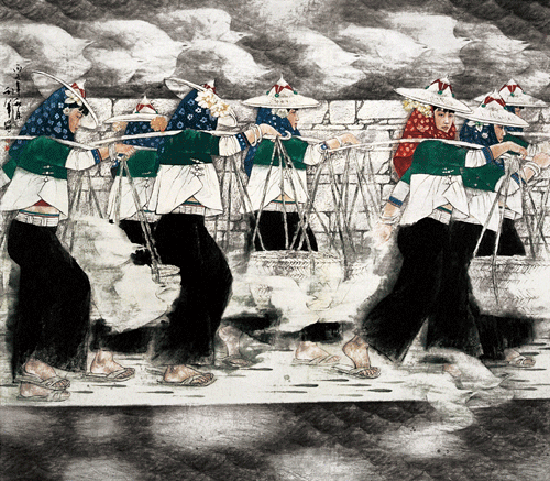 我们再看他笔下风姿绰约、栩栩如生的惠安女,已然是从人间的美轮美奂到达了天籁合一的境界。这绝不是巧合,也不是某种心灵的主观觊觎,却一定是艺术的必然,唯美的必然,真善美的必然。