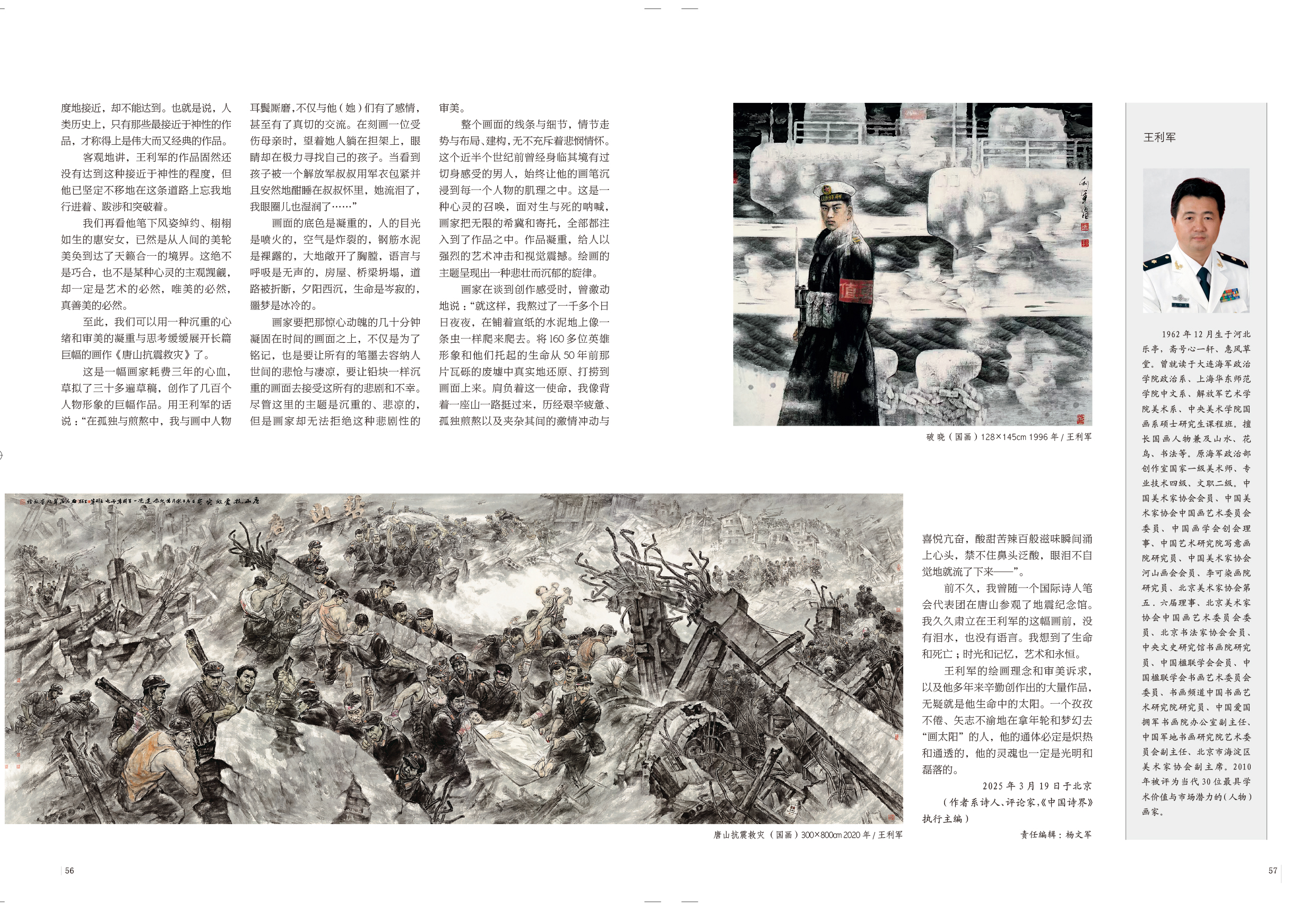 前不久,我曾随一个国际诗人笔会代表团在唐山参观了地震纪念馆。我久久肃立在王利军的这幅画前,没有泪水,也没有语言。我想到了生命和死亡;时光和记忆,艺术和永恒。