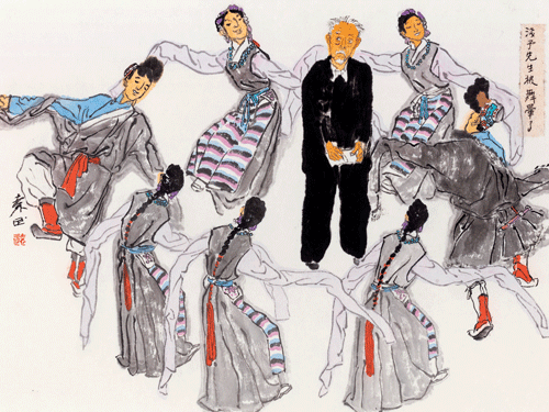 大师小景系列之二:浅予先生被舞晕了(国画)33×40cm 2024年 /袁 武