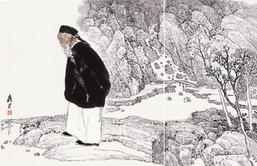 大师小景系列之一:石涛(国画)42×62cm 2023年 /袁 武