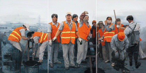 城市血脉疏通者(油画)185.5×362cm 2011年 /陆庆龙