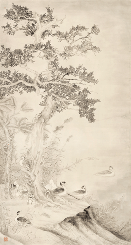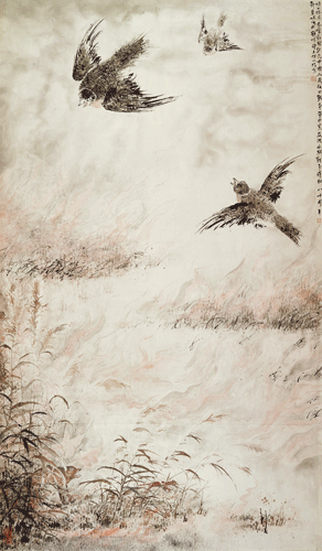 “搜妙”, 他将五代荆浩的“搜妙创真”从山水画拓展至花鸟领域,构建出吞吐大荒的“大景花鸟”,回应了现代公共展示空间对视觉张力的新要求。