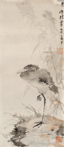 微雨静思(国画)74.5×33cm 2025年 /刘万鸣