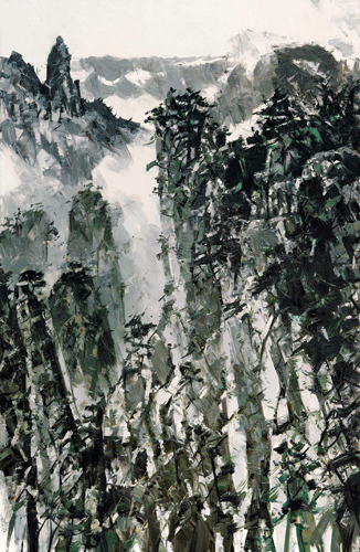 近年来,我集中着眼于油画的山水创作。在江南群山的绘画中,捕捉当下天地应和的呈现,追怀逝水流风,寻访往昔经典的诗情墨意,兴发时代激情,铸炼充满东方情怀的山水之诗。所念皆山,我的山水绘画中既存中国山水全山、立山、烟山的浑茫气象,又持东方意趣的磅礴如山的挥写方式。如是,所绘渐入仰山之境。