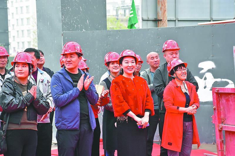 党佳佳(前右二)在山西省托幼托育产教融合实训基地一期二期三期封顶仪式现场。(图片由受访者提供)