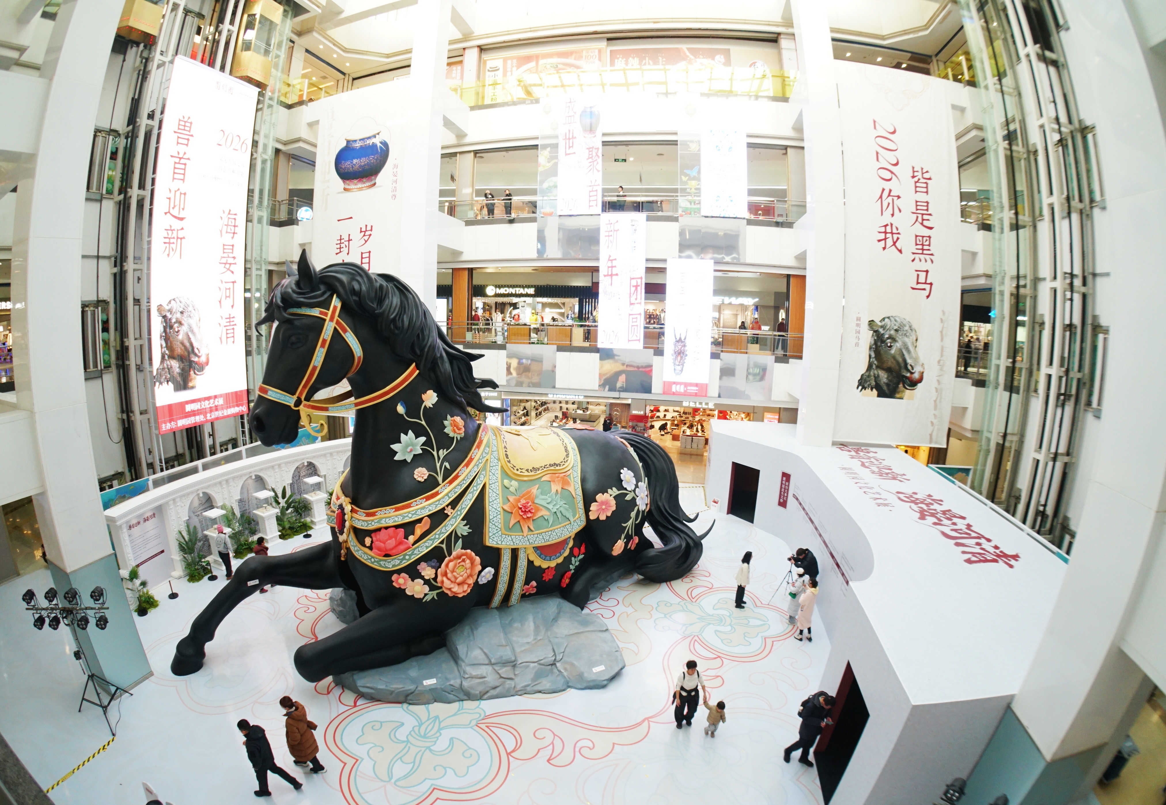 展览以国家文化遗产保护传承为核心,汇集多组珍贵复刻品:成龙捐赠的十二生肖铜像复制品、海晏河清尊复制品等,既展现中西文明互鉴的巅峰成就,也凝聚着民族情感与文物回归期盼。16米长“巨马”艺术装置以马首铜像为灵感,传递奋发进取的文化精神,呼应2026马年与强国梦想。