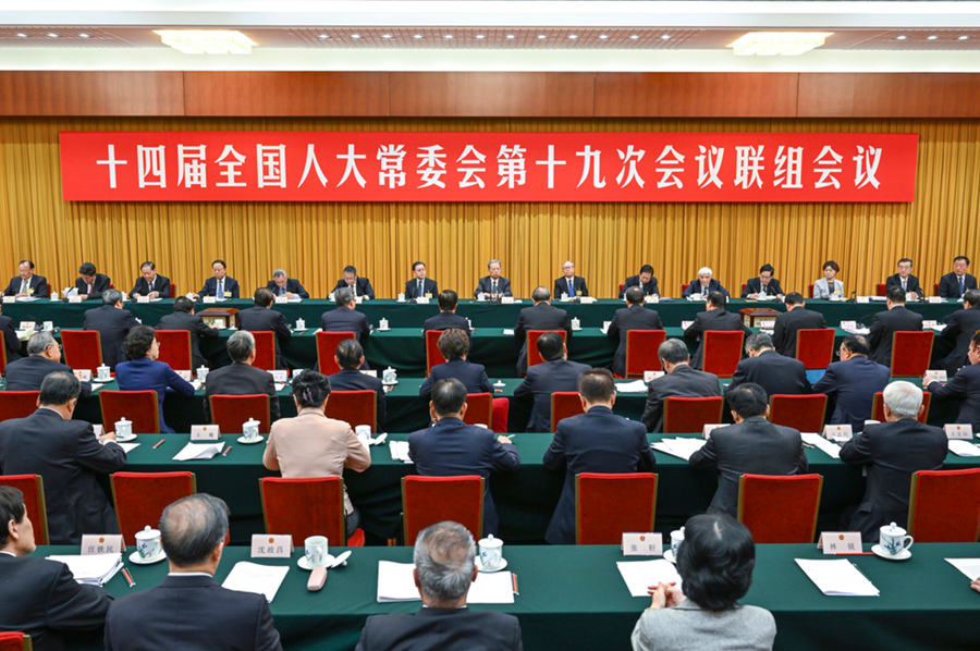 新华社北京12月24日电 十四届全国人大常委会第十九次会议24日上午在北京人民大会堂举行联组会议,审议全国人大常委会执法检查组关于检查节约能源法实施情况的报告并开展专题询问。赵乐际委员长出席会议。
