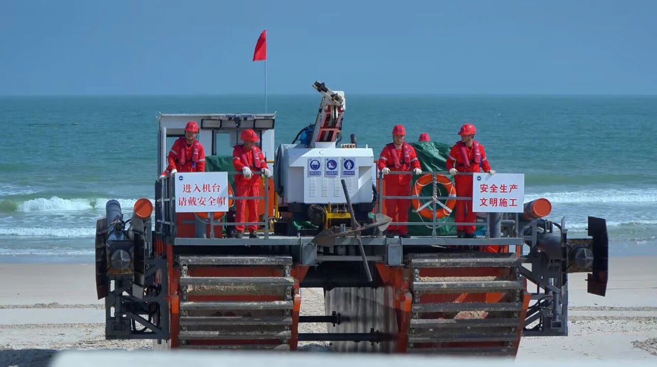 清晨的海南木兰湾碧波荡漾,白皙静谧的沙滩迎来了一群特殊的“客人”——高大的潮间带两栖多功能钻探平台、小巧的海陆两栖调查车、灵活的全陆域多足智能重载机器人……近日,潮间带滩涂绿色找矿装备示范展示活动在海南省文昌木兰湾锆铪矿调查区举行。