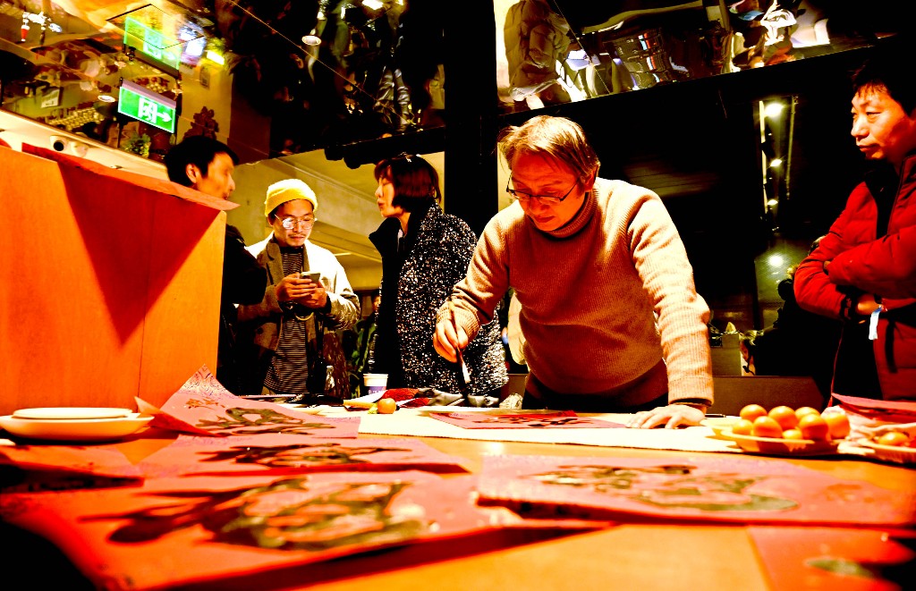 艺术家们欢聚一堂写福字,在欢声笑语中辞旧迎新。