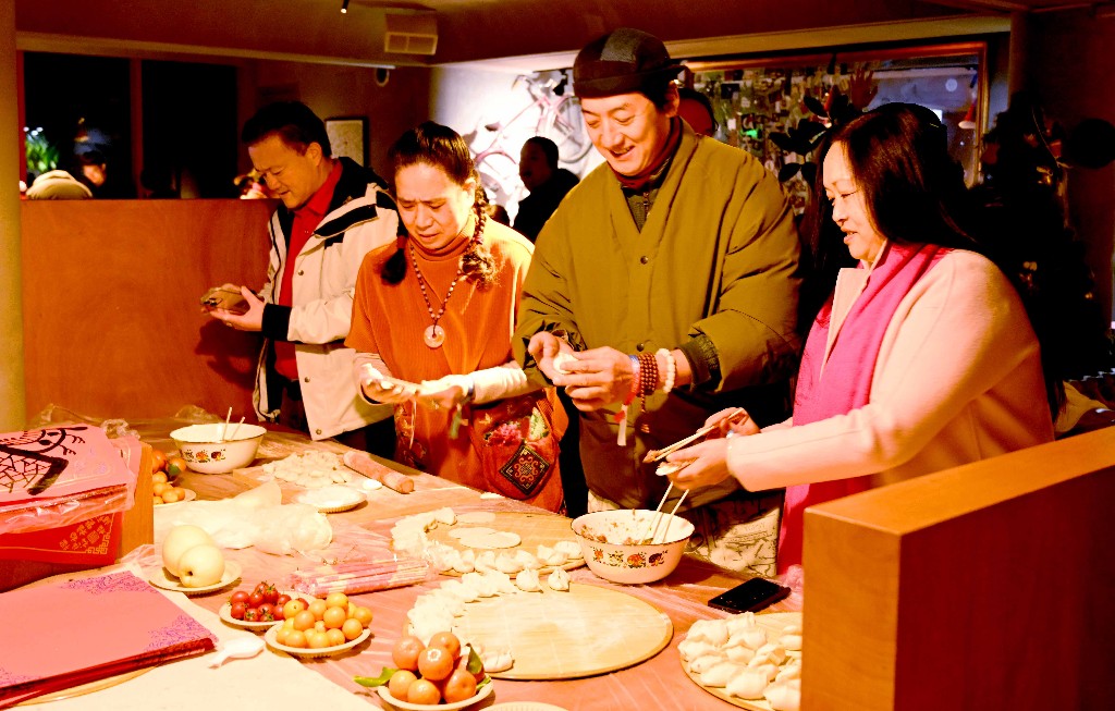 来自五湖四海的宋庄艺术家们欢聚一堂,包饺子、写福字、赏演出、话情谊,在欢声笑语中辞旧迎新。