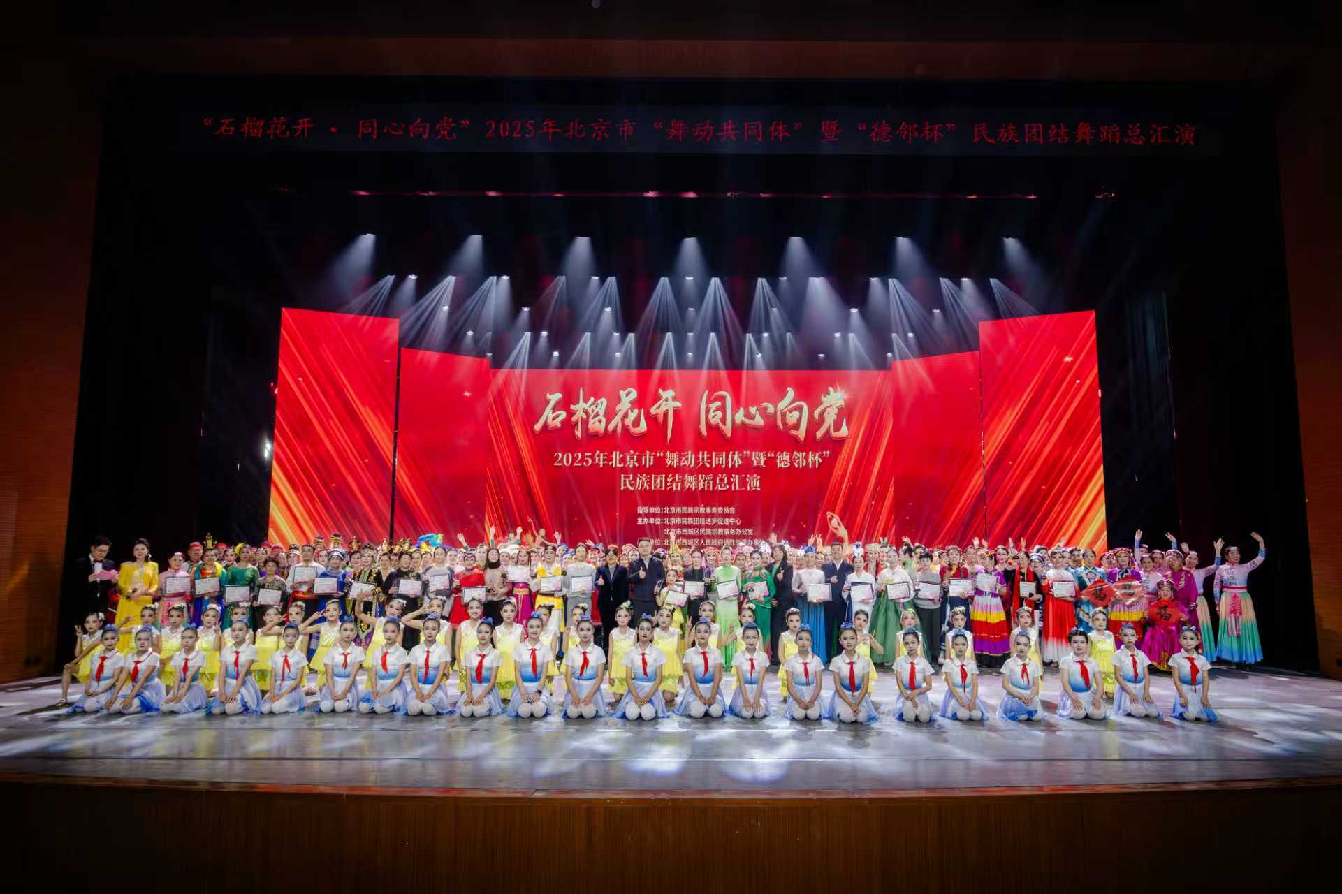 人民政协网北京1月8日电(记者 奚冬琪)1月7日晚,“石榴花开·同心向党”2025年北京市“舞动共同体”暨“德邻杯”民族团结舞蹈总汇演在中央民族歌舞团民族剧院隆重举行。