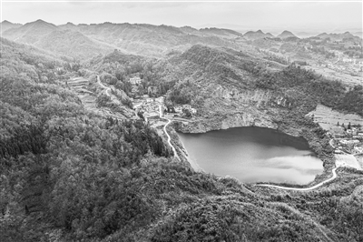 贵州省黔西市新仁苗族乡的煤矿山碧波荡漾、美丽如画