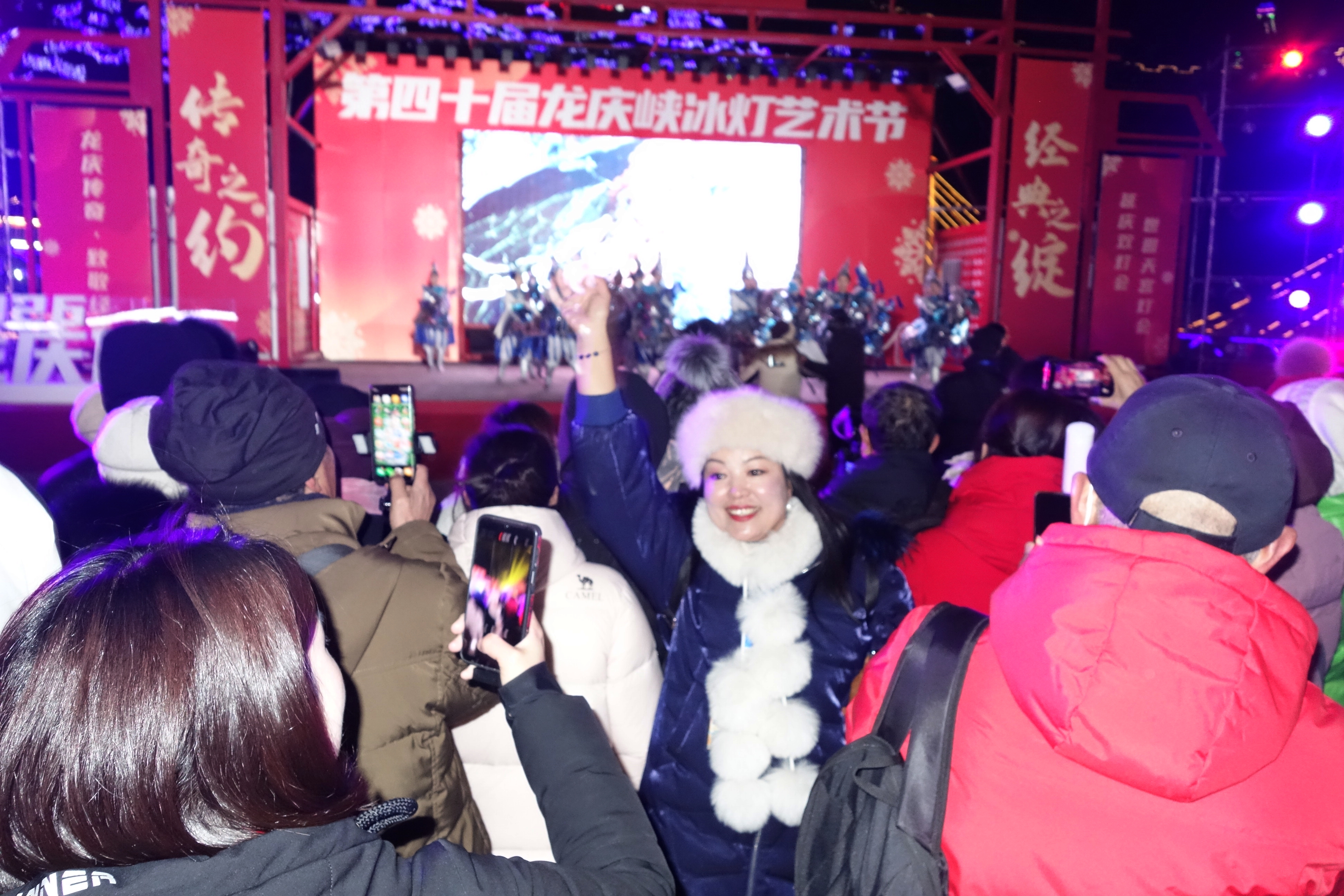 开幕式现场民俗风情与温情回忆交织,市级非遗“冰雪竹马”舞蹈率先登场,灵动舞步点燃现场氛围;40周年回顾宣传片带领观众穿梭时光,重温从1987年第一盏冰灯亮起的温暖岁月。活动特设暖心福利,1987年出生的市民可凭身份证免费入园,与冰灯艺术节共庆生辰。北京京剧院《闹龙宫》表演精彩上演,龙娃代表与游客共同开启艺术节,璀璨极光秀点亮夜空,为开幕式画上圆满句号。