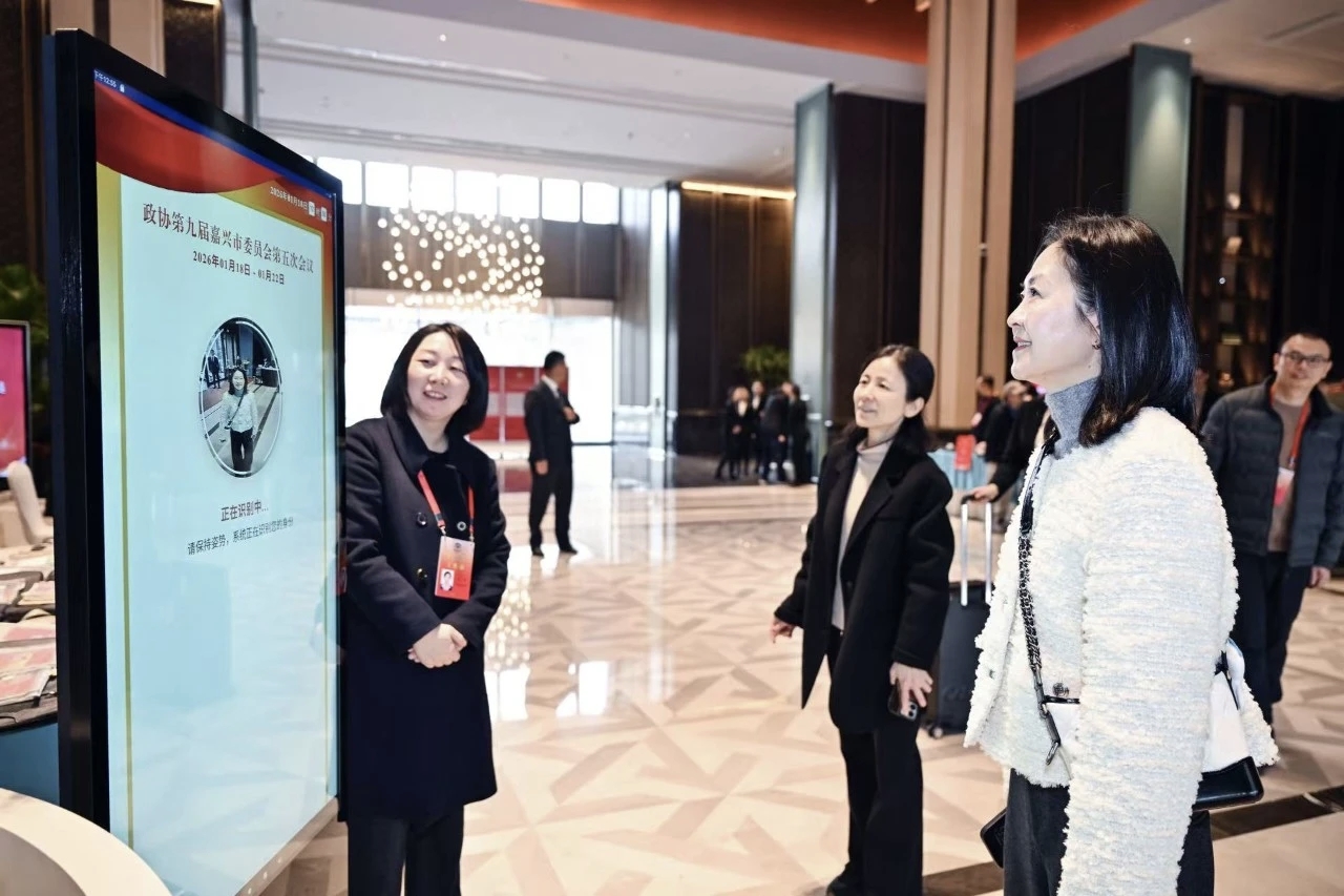 浙江省嘉兴市政协以数智赋能新时代协商民主实践1月18日下午,浙江省嘉兴市政协九届五次会议委员报到现场,政协委员们在驻地大厅“数字综合服务站”立屏前短暂停留——“报到成功,欢迎您,请到3号桌领取会议资料!”伴随着清脆的提示音,融合了人脸识别与数据交互的会议智能签到系统已快速完成身份核验。“无感化”的友好体验,让前来报到的参会人员纷纷点赞。