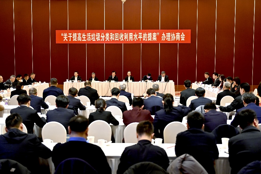 “关于提高生活垃圾分类和回收利用水平的提案”办理协商会现场。