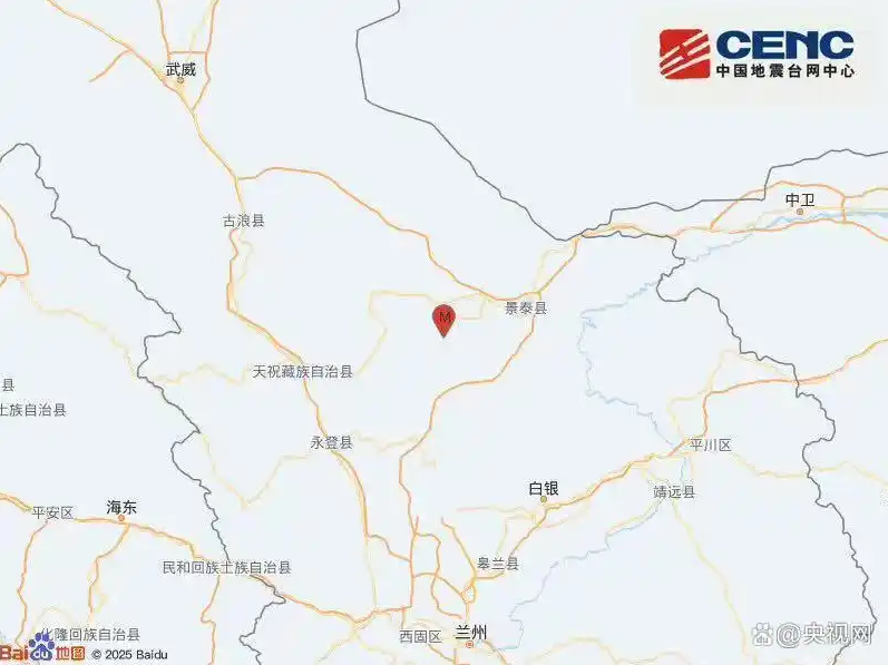 甘肃白银市景泰县发生3.6级地震 震源深度10公里