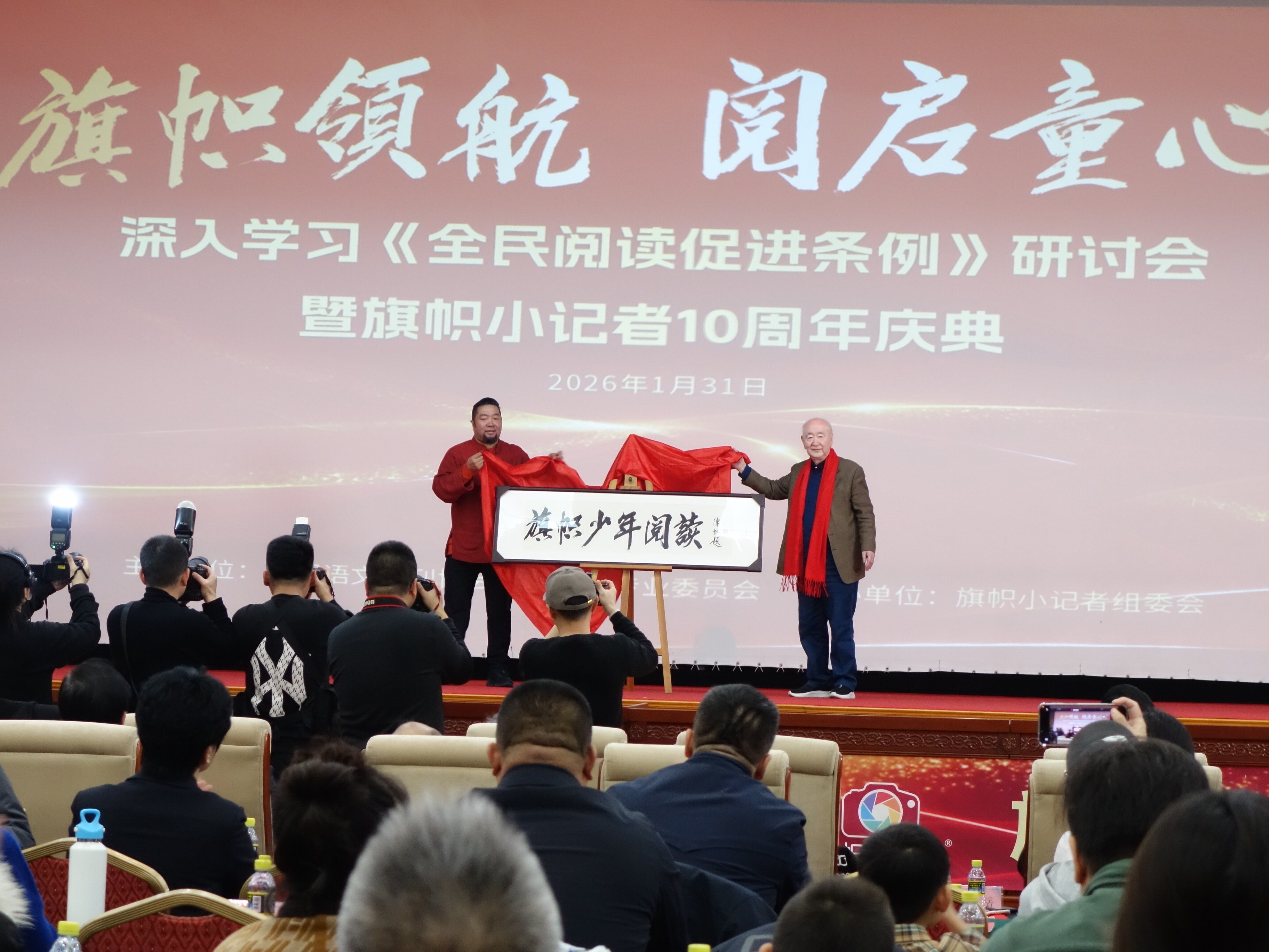人民政协网1月31日电(记者 贾宁)1月31日,“旗帜领航 阅启同心”深入贯彻《全民阅读促进条例》研讨会暨旗帜小记者十周年庆在全国人大会议中心圆满举办。恰逢《全民阅读促进条例》即将于2月1日正式施行,活动以政策落地为契机,汇聚各界领导、专家学者、媒体同仁及小记者代表,共探全民阅读推广新路径,回顾青少年传媒教育十年成果。