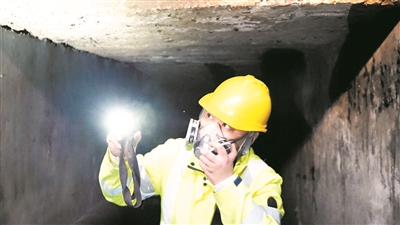 在地沟内每前进50米,邹伟君都必须停下调整呼吸,与地面联络:“地面,地下作业组,位置3号井东50米,一切正常。”得到地面值守同事的回复后,才能继续前进,每次地沟内检查不能超过100米。