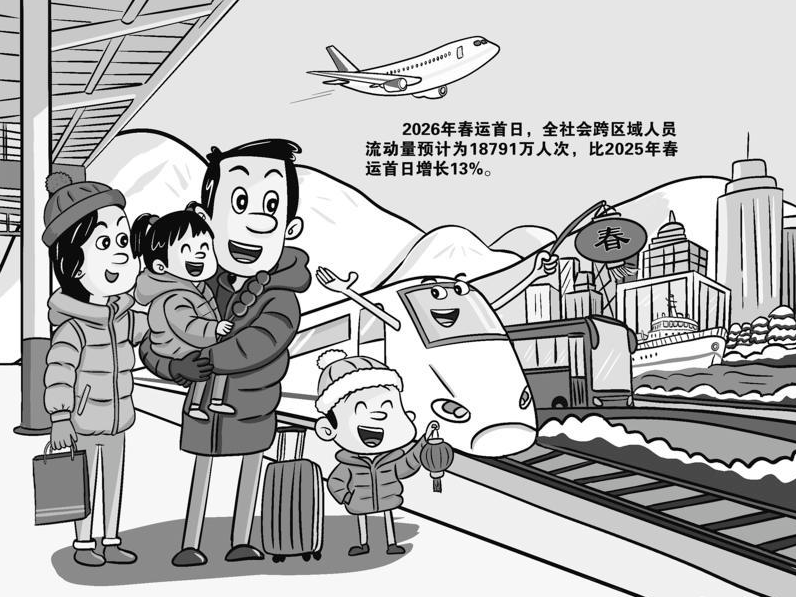 春运大幕已经开启。交通运输部最新数据显示,今年春运将呈现多个“历史新高”:40天春运周期内,全社会跨区域人员流动总量预计将达到95亿人次,创下同期最高纪录;春节假期日均流动量将接近2.99亿人次,正月初六单日峰值预计突破3.4亿人次;自驾出行同样刷新纪录,高速公路单日车流量峰值有望达到7100万辆次,其中新能源车出行总量预计将达3.8亿辆次。图/王晨