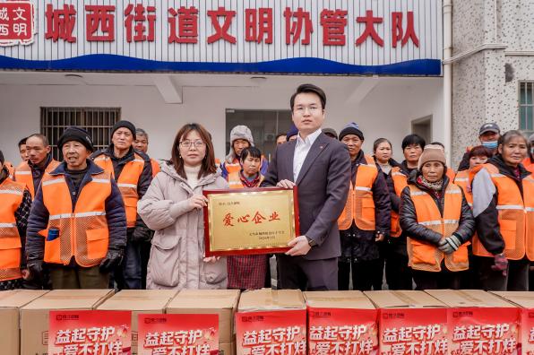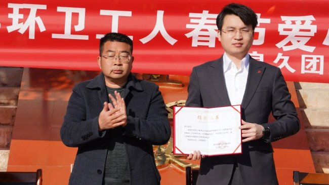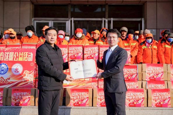公益行动抵达天津宝坻。宝坻区城管委党组书记、主任郭金雨对良久千里送温暖的举动表示感谢,他希望一线环卫工人能继续坚守岗位,守护好春节期间的城市面貌,并为良久颁发“爱心公益企业”荣誉牌匾。