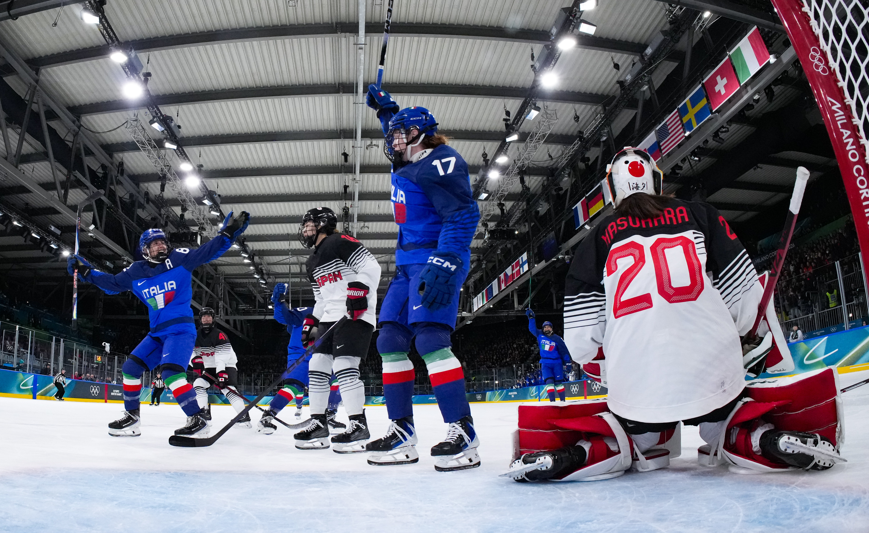 当地时间2月9日,在意大利米兰举行的米兰-科尔蒂纳冬奥会冰球项目女子小组赛B组比赛中,意大利队3比2战胜日本队。