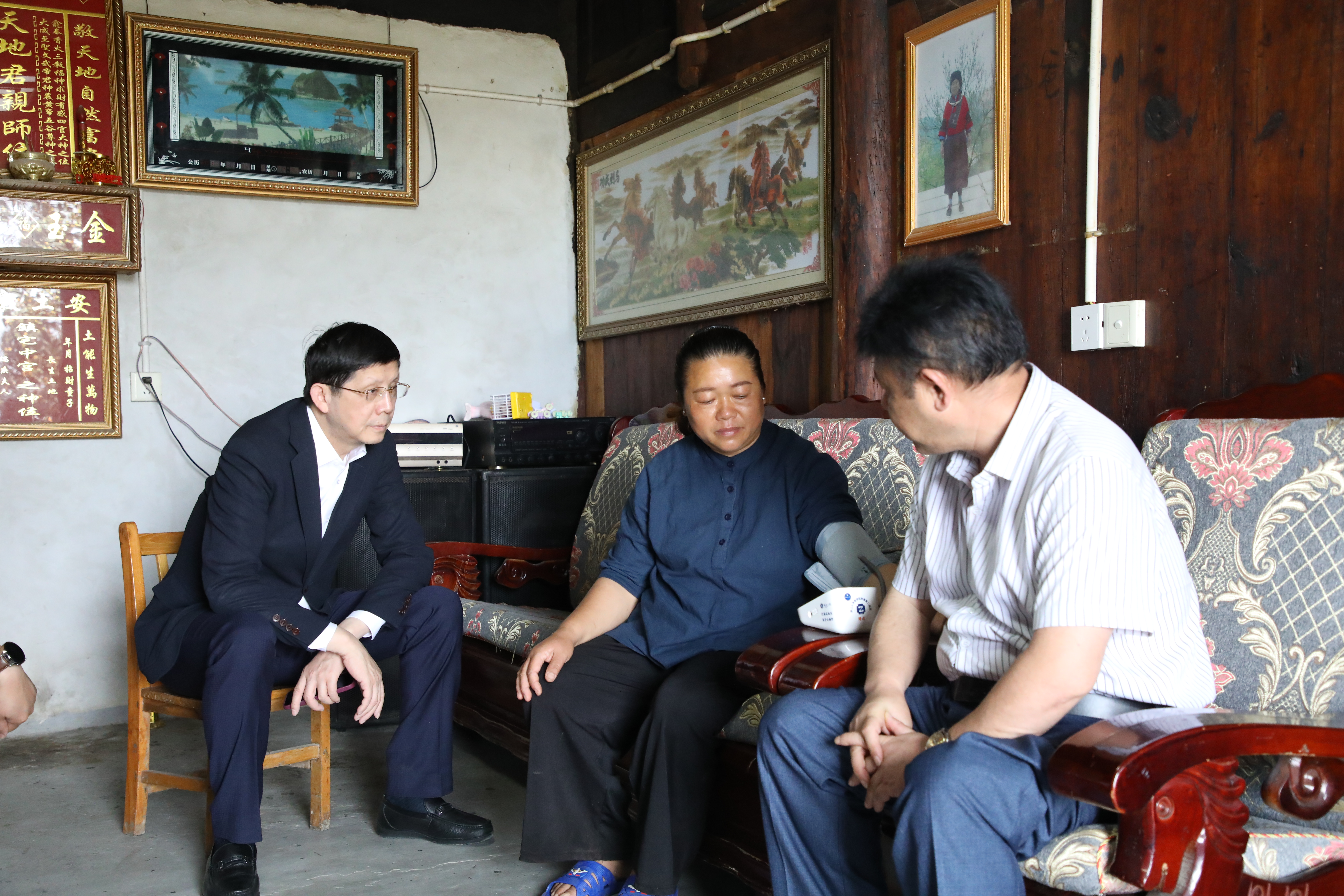 王建安(左一)到贵州台江台盘乡村民家中调研。