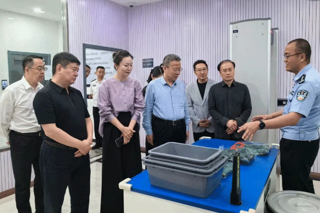 ▲田晶鑫(左三)随同市政协调研组到海淀分局办案中心调研