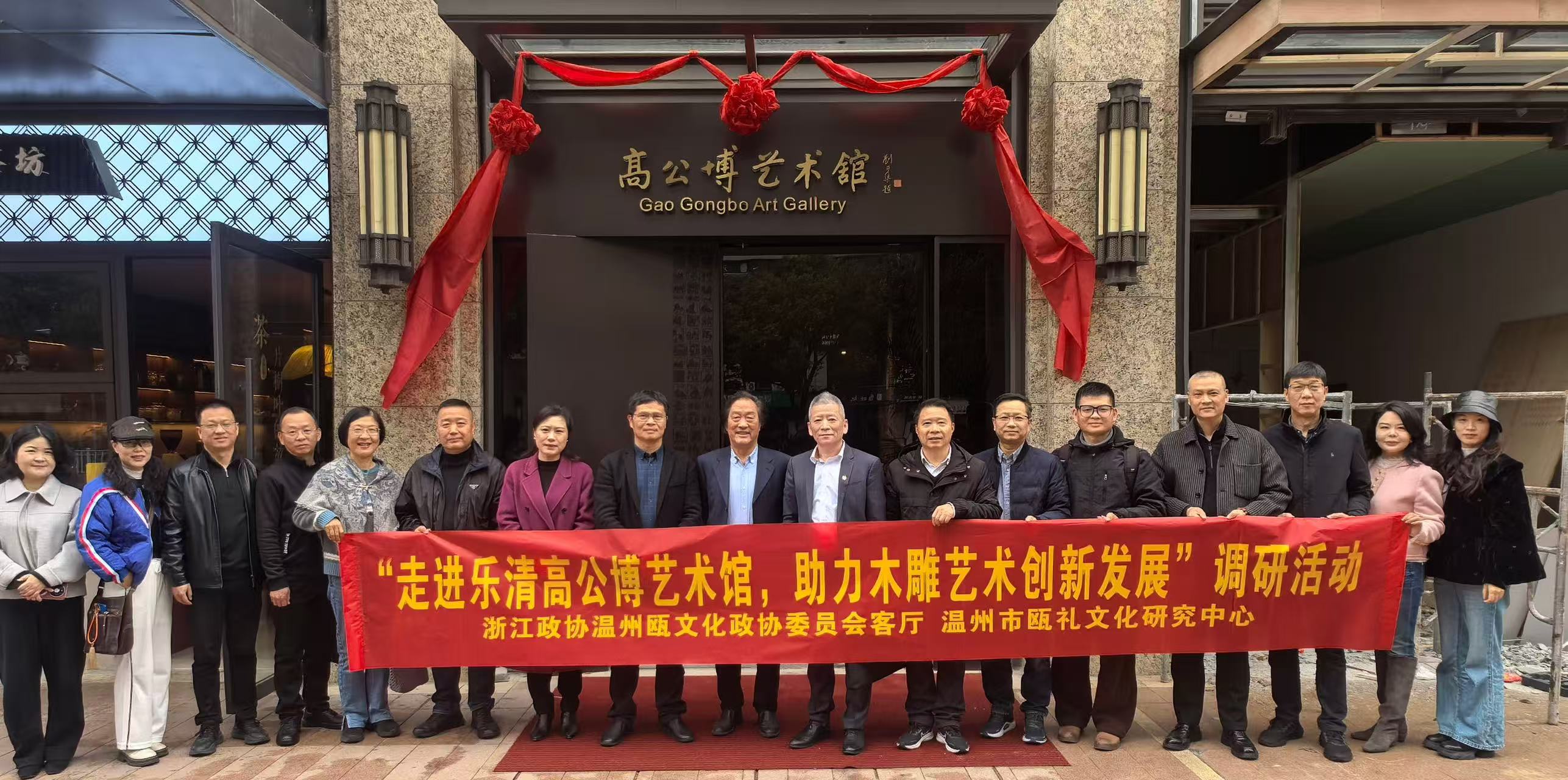 为深入探寻传统工艺美术的当代价值,探索非遗传承与创新的融合发展路径,日前,由浙江省政协温州瓯文化政协委员会客厅、温州市瓯礼文化研究中心主办的“走进乐清高公博艺术馆 助力木雕艺术创新发展”调研活动,行业专家及文化学者一行17人专程赴浙江乐清开展“走进高公博艺术馆——助力木雕艺术创新发展”专题调研活动。调研组通过实地参观、大师对话、座谈研讨等形式,全方位感受中国工艺美术大师高公博六十年如一日的匠心坚守与“新奇独变”的艺术求索。