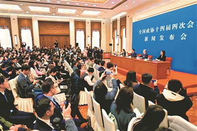3月3日,全国政协十四届四次会议新闻发布会在北京人民大会堂举行。大会新闻发言人刘结一向中外媒体介绍本次大会有关情况并回答记者提问。 本报记者 田福良 摄