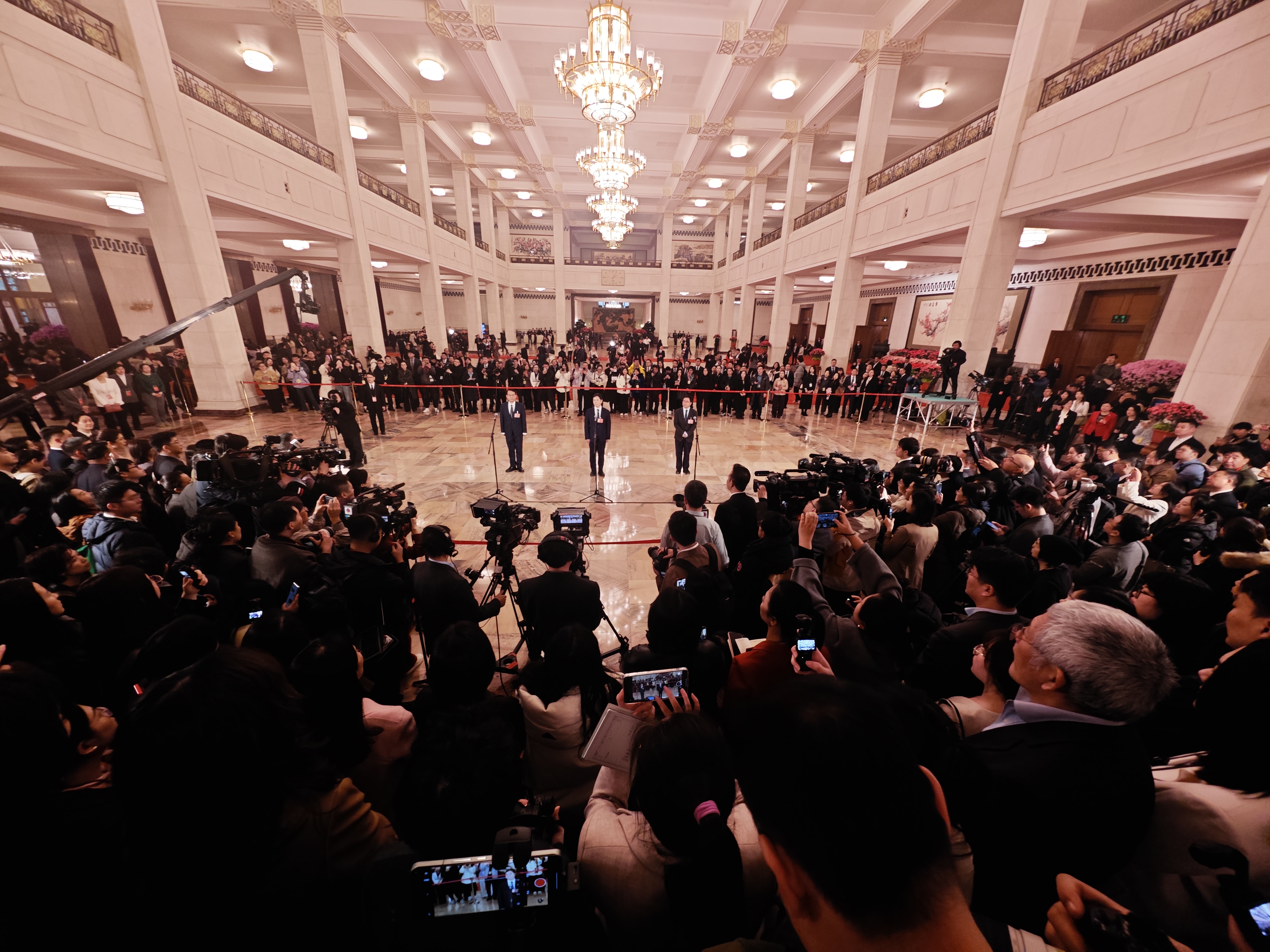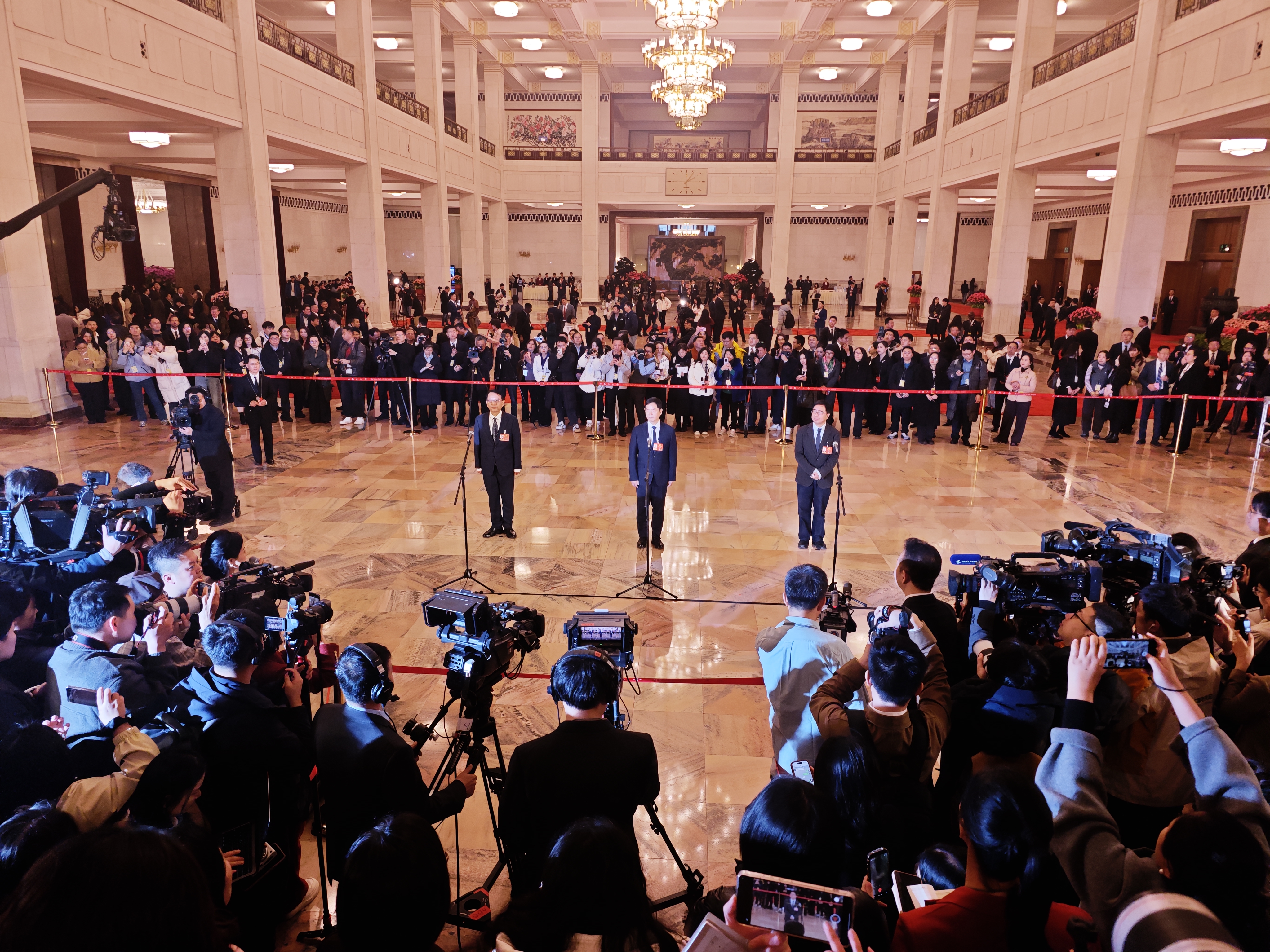 今天(3月4日)下午,全国政协十四届四次会议首场“委员通道”在人民大会堂举行。人民政协报记者 贾宁 摄