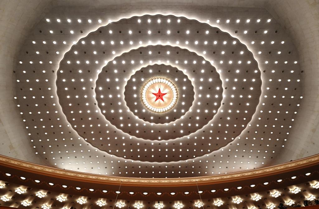 3月4日,全国政协十四届四次会议开幕会即将在北京人民大会堂举行。这是人民大会堂内景。