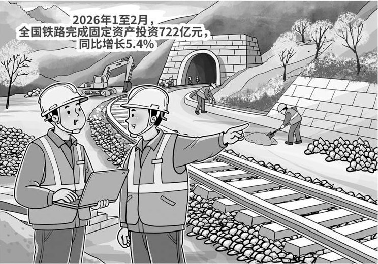 记者3月11日从中国国家铁路集团有限公司获悉,2026年1至2月,全国铁路完成固定资产投资722亿元,同比增长5.4%,铁路建设优质高效推进,为区域经济社会发展注入新动能。