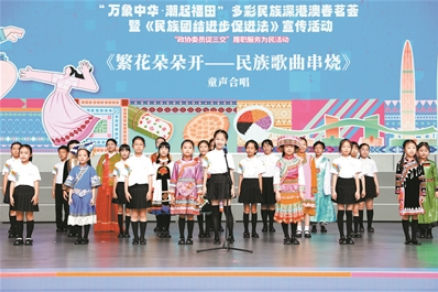 ▲活动现场,孩子们唱响民族歌曲串烧。(深圳市福田区民族团结进步协会供图)