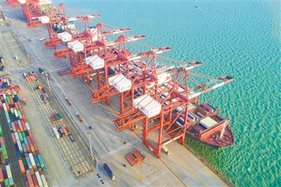 4月的青岛,海风微凉,刚刚在今年一季度新开通7条集装箱航线的山东青岛港,迎来一派繁忙。不仅青岛港,南京港一季度完成货物吞吐量、集装箱量同比分别增长15.93%、15.64%,福州港一季度完成货物吞吐量与集装箱吞吐量同比均实现增长……穿越南北海岸线,繁忙的港口次第花开,映射出我国经济活力的欣然向上与产业链运行效率的节节攀升。一季度,我国货物进出口总额118380亿元,同比增长15%。