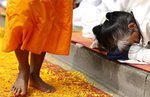 泰国僧侣赤脚步行四百余公里 信徒撒花瓣铺路