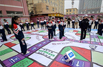 玩巨型“飞行棋” 学交通安全知识